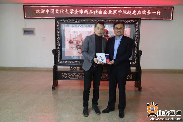 王益民介绍了山东大学管理学院的基本情况及培养理念,希望双方能够在教学科研和人才培养领域加强交流合作,形成双赢局面。赵忠杰介绍了全球两岸社会企业家学院的发展状况和办学目标,对山东大学管理学院的发展和学科建设给予高度评价。随后,双方就商学教育课程特点、培养方式进行了探讨,希望加强两校间的人才培养、学生交换、教学互动等合作,表示今后将开展更加广泛的合作项目,推进双方的交流沟通。