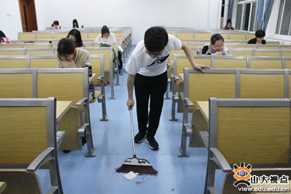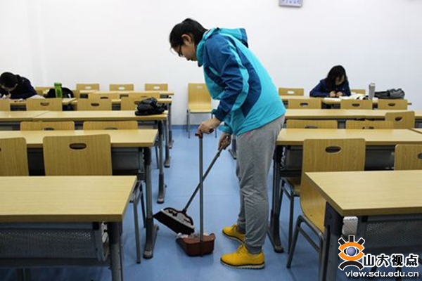 [本站讯]为响应党的十九大建设美丽中国的号召,山东大学口腔医学院学生会在四月份面向全体本科生开展了“小小清洁工”的志愿者征集活动,并组织志愿者在周六、周日晚对趵突泉校区各大自习室进行了卫生打扫。这项活动的举办旨在还校园以干净整洁的面容,同时提高同学们的公共卫生意识。