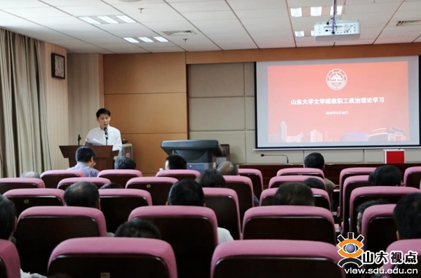[本站讯]近日,文学院在知新楼组织全体教职工进行政治理论学习。院党委书记张帅主持学习并讲话,全体教职工参加学习。