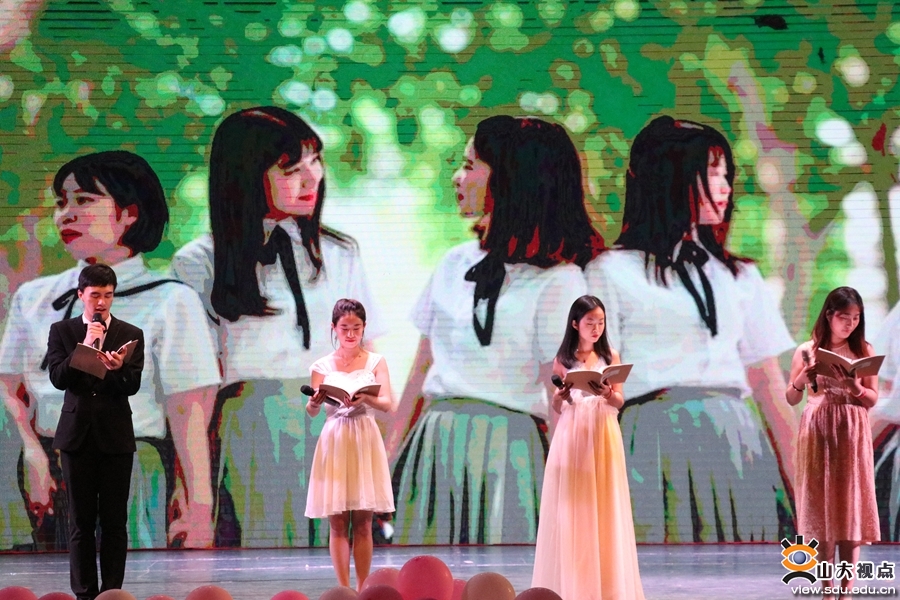 晚会前,毕业生们在签名墙前留下自己的名字,相伴走过红毯,穿越拱门进入晚会现场。晚会开始后,由毕业生同学带来的舞蹈串烧点瞬间燃了现场的气氛。随后,在歌曲串烧中,几位大学四年没有在舞台上展示过才艺的同学也积极上台表演,一首《传奇》感谢大家的相遇,一曲《后来》道不尽离别之情。除了歌舞,晚会中间穿插的小游戏《你来比划我来猜》设计精妙,结合了哲社学院的学科特色设计了例如“形而上学、社会流动”等学术名词给参与者带来不小的难度,也引得现场同学积极参与,同时也给同学们带来了无数的欢声笑语。山东大学相声协会的同学为毕业生带来了精彩的相声节目,活跃了现场的气氛,令人忍俊不禁。平静过后,舞蹈节目《as long as it’s if the last》将晚会推向了一个小高潮。之后,毕业生以宿舍为单位在舞台上一起演唱了《纸短情长》《朋友》等歌曲则唤起了同学们关于大学四年生活中点点滴滴的回忆,令人不禁流下了不舍的泪水。晚会在全体同学合唱的《我的山大我的家》中划上了圆满的句号。