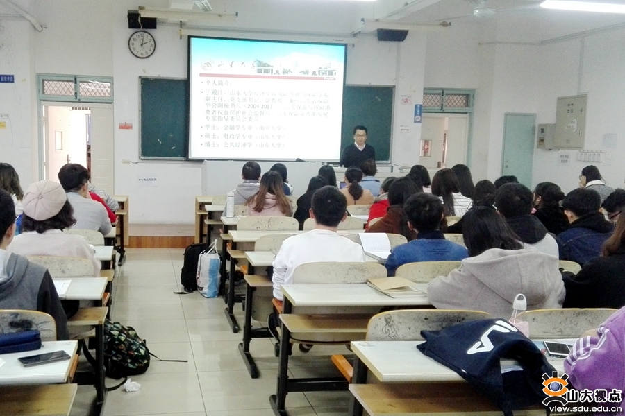 [本站讯]为深入贯彻、积极落实山东大学一校三地教育教学资源的共建共享计划,加强中心校区与威海校区两地保险学专业的交流、互动、提升,经济学院派两团为2016级、2017级威海校区保险学专业学生带来了学术大餐。一团成员是11月14日前往的于殿江副教授、严晓东副研究员和裴有权副研究员,活动由凌士显老师主持;二团成员是11月19日前往的刘颖老师、焦桂梅老师和张茜老师,活动由谢清华和凌士显老师主持。