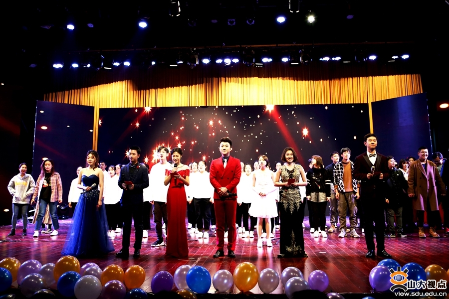欢声笑语与深情歌声的韵律,一同在圣昆仑音乐厅奏响。插科打诨的相声《新语新说》,新老搭档对碰,一逗一捧之间,赢得无数笑声与掌声;十大歌手武中奇、刘梓柒凭借颇具张力的台风、扎实的唱功把控全场;合唱节目中,《夏天的风》青涩动人,《少年中国说》豪情满怀;古典歌舞节目《山鬼》将观众带入了神秘的古典世界。在众多节目中,有这样一个较为特殊:新闻传播学院、山东大学广播电视台教师郭坦倾情献唱《悟空》,在这之前他刚刚成为济南市第62例造血干细胞捐献者,悟空之歌尽显英雄本色,而郭坦老师也为广大新传学子树立了模范榜样。除此之外,逗趣小品《记者2》、文学经典《雷雨》等节目,在现场掀起一个又一个高潮。