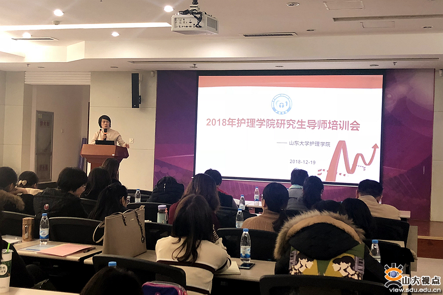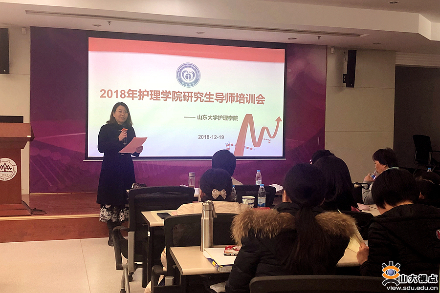 [本站讯]12月19日,护理学院举办了研究生导师培训会。齐鲁医学院研究生处副处长李晶晶,首都医科大学护理学院刘均娥教授,护理学院副院长范秀珍、厉萍教授、研究生辅导员沈一桥参会并作报告。护理学科全体研究生导师和拟申请研究生导师的教师参加本次培训会。培训会由护理学院院长王克芳主持。