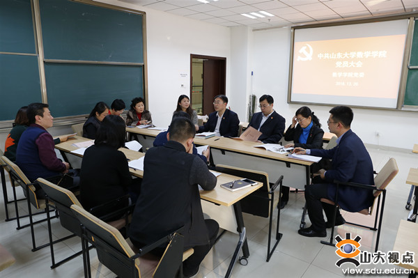 [本站讯]12月20日,中国共产党山东大学数学学院学院党员大会在中心校区举行。中国科学院院士彭实戈出席会议。曲明军同志向大会作题为《谋宏篇,布大局,创伟业——以一流党建开启一流学科建设新征程》的大会报告,陈增敬同志列席会议。