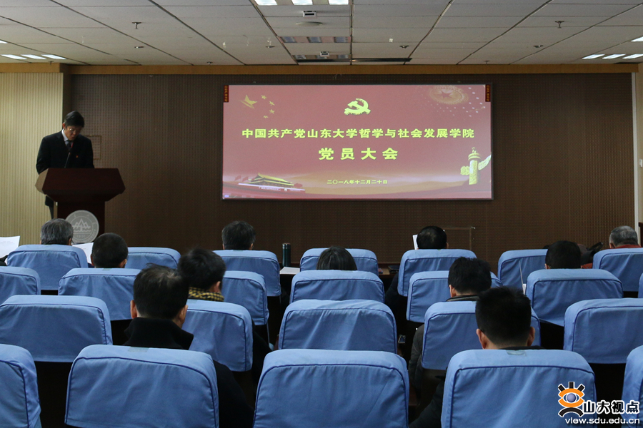 [本站讯]12月20日,中共山东大学哲学与社会发展学院党员大会在中心校区举行。郑倩同志作了题为“勇立潮头 踔厉奋发 全力推进学院争创一流建设再攀新高峰”的工作报告。刘森林、毛永强同志分别主持会议。学院全体教工党员和学生党员代表参加会议。