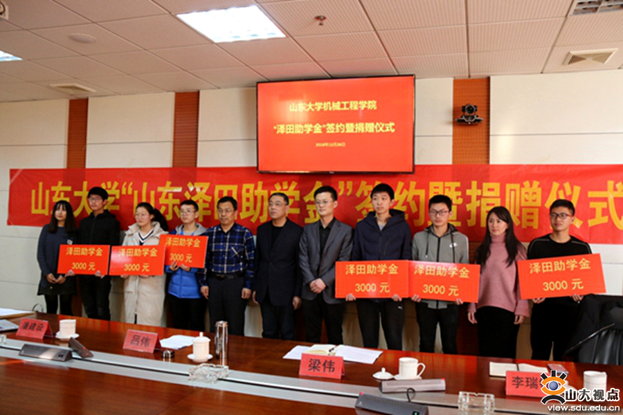 本次“泽田助学金”共评选出2018级6名品学兼优的本科生,每人资助3000元。山东大学资助中心有关人员参加活动。