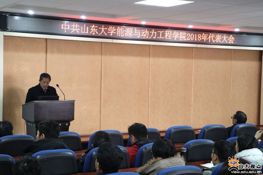 [本站讯]12月27日,能源与动力工程学院党员大会在千佛山校区举行。本次大会的主题是“高举习近平新时代中国特色社会主义思想伟大旗帜,全面贯彻党的十九大和学校第十四次党代会精神,激发办学活力,推动内涵发展,同心同德,砥砺前行,努力实现学院改革发展新飞跃”。学院全体教职工党员、学生党员代表参加会议。会议由党员滕玉军主持。