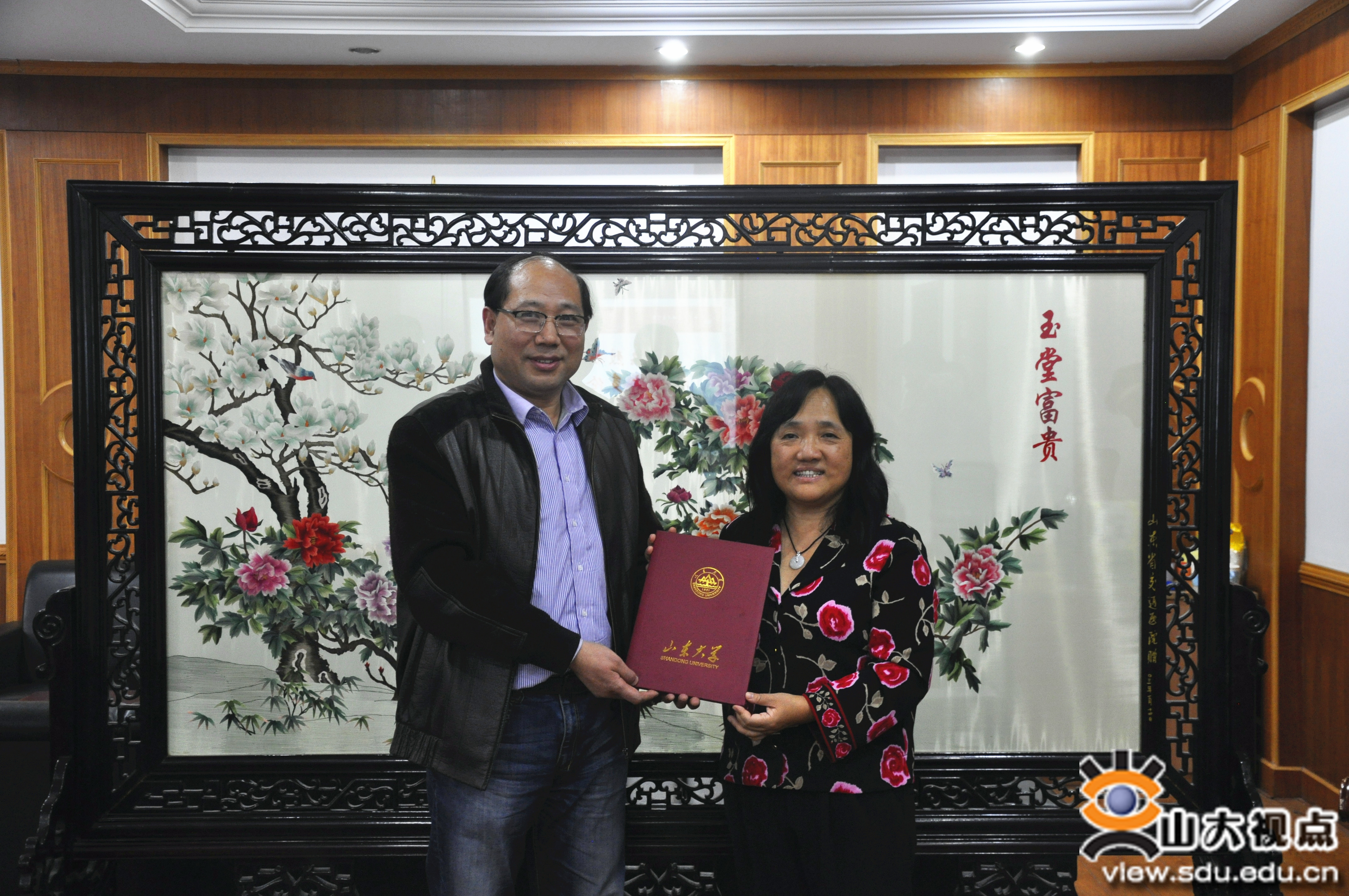 座谈交流阶段,双方就两院的研究平台、师资培训和学生培养等方面进行了深入交流,计划从精神疾病、血液疾病及肿瘤免疫等方面共同搭建实验平台,同时大力开展教师互访、学生联合培养等方面的合作。活动最后,牟道玉为刘芳教授颁发了“山东大学国际合作联络教授”及“山东大学临床医学院兼职特聘教授”的聘书。