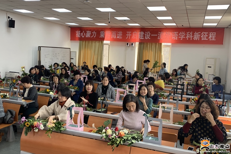 [本站讯]3月8日下午,外国语学院工会组织女教职工开展“三八”国际劳动妇女节花艺沙龙。学院常务副书记薛佩军代表学院党委向全院女师生员工致以节日的问候。