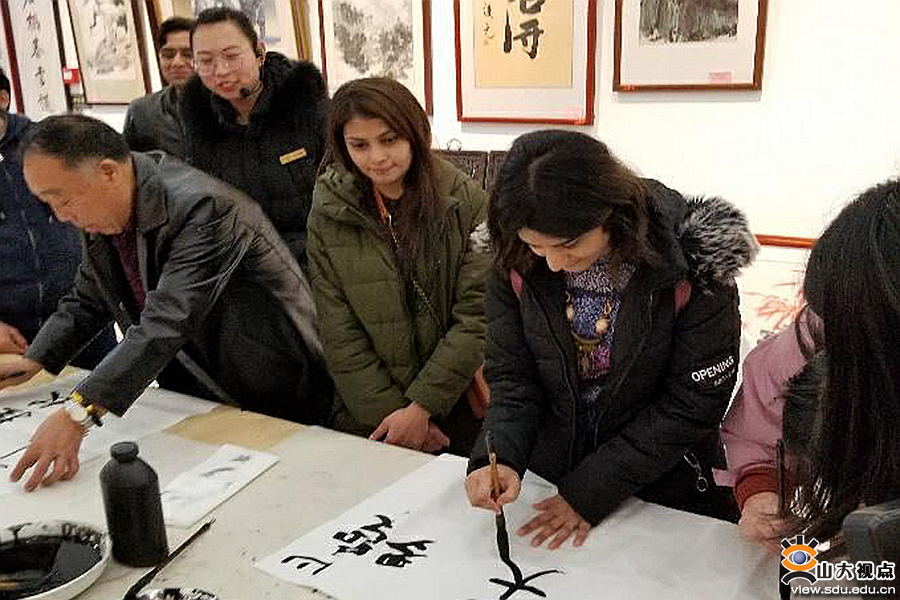 在古城美术馆,留学生们在专业老师的指导下,学习用毛笔书写汉字。书法家简要解释了书法的起承转合与篇章布局,并现场示范教学,令留学生们赞叹不已。最后,留学生们体验了黄陶彩绘、官庄竹编、大欧鸟笼等非遗产文化项目,了解这些精致的传统工艺品的用途与发展。活动结束后,留学生们纷纷表示,这是一次令人惊喜的完美体验,感受了中国传统文化的巨大魅力,让他们在欣赏古城景观的同时了解了中国历史文化,大开眼界,受益匪浅,也激发了自己进一步探索、研究中华文化的兴趣。