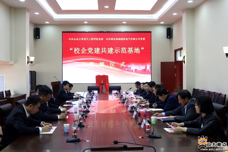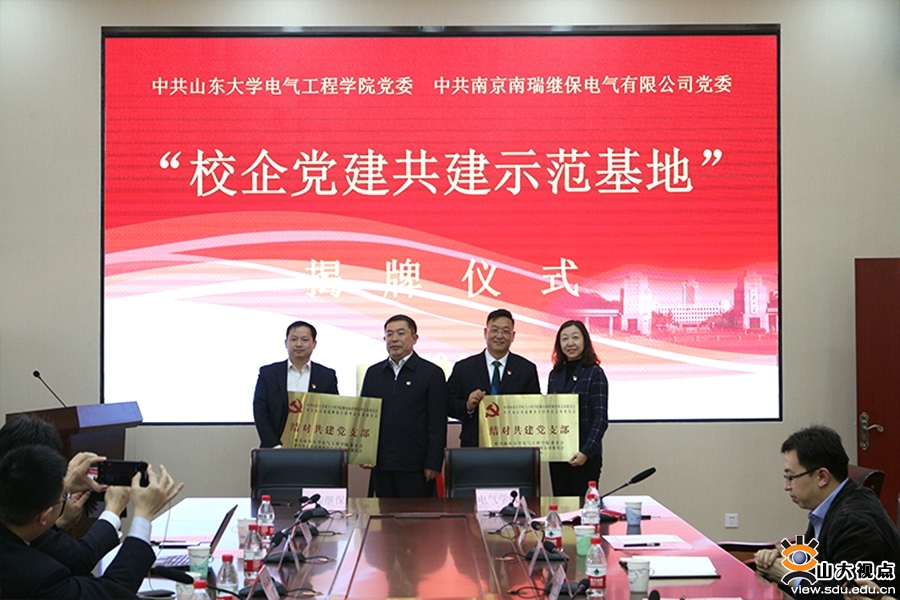 [本站讯]4月3日,电气学院党委与南京南瑞继保电气有限公司党委在千佛山校区举办“校企党建共建示范基地”揭牌仪式。学院党委书记刘相宜,常务副院长张恒旭,南京南瑞继保电气有限公司副总经理梁少华出席仪式。学院副处级组织员薛辉主持仪式。