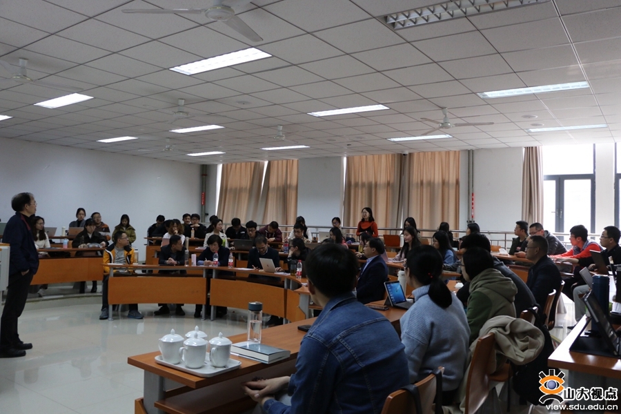 王明进教授结合自身论文编辑审稿经历,从论文的标题、摘要和关键词、引言、资料的使用与标注、论文的发表五个方面谈了如何撰写出高水平的学术论文。他首先从多年担任学术期刊编辑的专业角度,说明了论文标题的重要性,强调好的论文标题是文章的名片,是论文的灵魂和旗帜,好的标题来自于优秀的选题,选题要新颖、具体,注意历史与现实、理论与实践的结合,此外标题还要注意内涵与外延的统一,做到简洁凝炼,庄重平实。关于摘要和关键词,王明进教授提到摘要的写作应该保证客观性,如实反映文章内容;具有独立性,尽量不依赖原文;讲求简洁性,力求结构严谨言简意赅。在关键词的选择上,他格外强调了专指、词性、全面三点注意事项;引言写作则应做到内容实事求是,不能过分夸大或修饰。王明进教授重点分享了在资料使用与标注方面的个人心得。他认为,资料的使用与标注应客观中立,科学严谨,证据确凿,逻辑清晰,层次分明,不能出现科学和常识性错误,更不能有漏洞硬伤;资料的使用首先要权威、前沿,其次要中外兼顾,慎重引用互联网内容,同时严把政治关,最重要的是切忌出现抄袭等学术不端行为和纠纷。此外,王明进教授还就论文发表等相关内容提出了建议。报告结束后,同学们针对论文写作过程中经常遇到的问题进行了提问,王明进教授作出了耐心细致的解答。五十余名师生参加讲座。