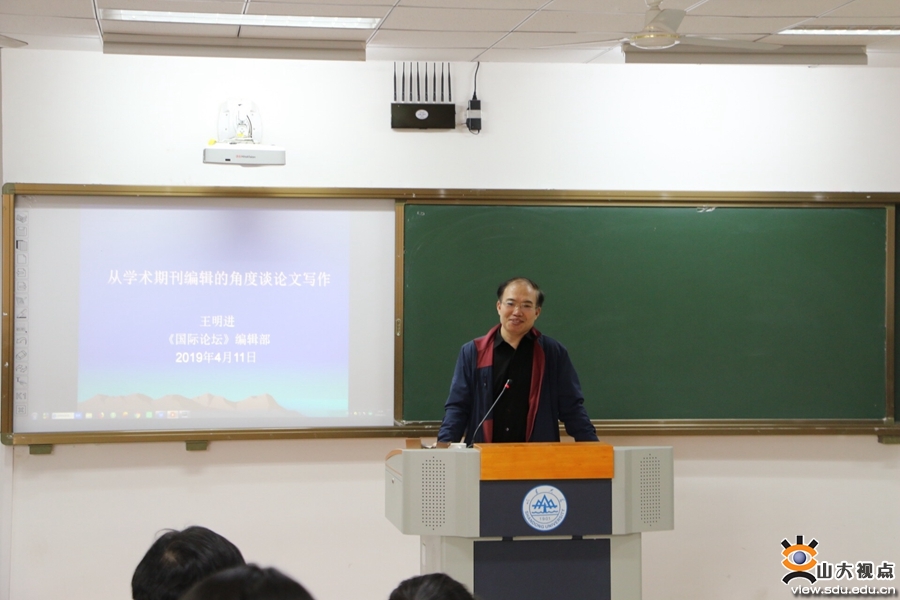 [本站讯]4月11日,北京外国语大学国际关系学院副院长、《国际论坛》副主编王明进教授应邀做客政管学院研究生学术讲坛,作了主题为“从学术期刊编辑的角度谈论文写作”的讲座。本次讲座由学院副院长刘昌明教授主持。