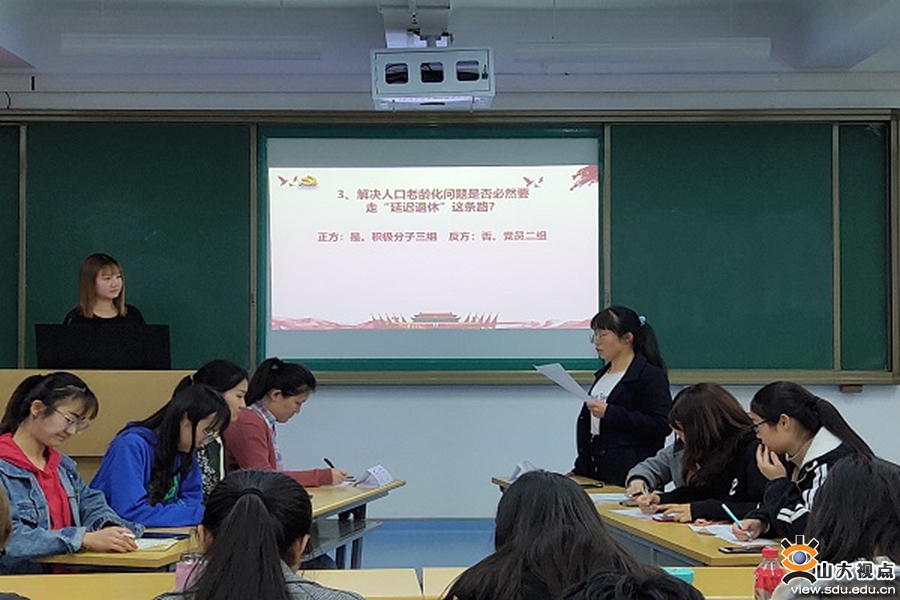 [本站讯]近日,公卫学院本科生党支部在趵突泉校区举行“两会热点话题”辩论赛。本次辩论赛由本科生党支部宣传委员王京京主持,学院党委书记李士保出席此次辩论赛。