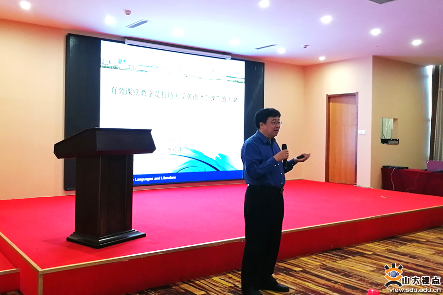 此次论坛由山东省大学外语教育研究专业委员会及高等教育出版社联合主办,来自省内37所高校的115位专家学者参会。论坛特邀南京大学王海啸教授、对外经济贸易大学向明友教授、曲阜师范大学王广成教授、四川大学文举副教授等多位专家作主题发言。他们分享了大学外语教育教学最新成果,分析了大学英语教学改革的新形势、新任务,探讨了如何进行课堂革命、如何打造“金课”、如何建设在线开放课程等问题,为未来大学外语教育教学研究和实践研究寻求新思路,拓展新途径。