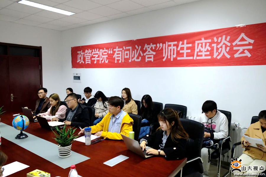 [本站讯]4月17日,政管学院“有问必答”师生座谈会在青岛校区举行。学院副院长李济时、赵启鹏参加座谈会。党委副书记桑伟林主持座谈会。