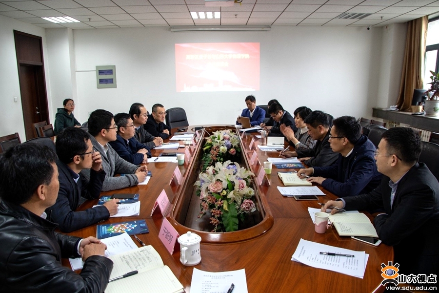 [本站讯]4月19日,济南高新区量子谷发展中心副主任孟晨彦、济南高新区齐鲁软件园发展中心副主任张旭东携同企业代表一行7人到物理学院进行合作座谈。学院党委书记郁鹏,院长陈峰,党委副书记吴天柱,组织员于新好及胡卉、逯鹤等教授参加了座谈会。座谈会由陈峰主持。