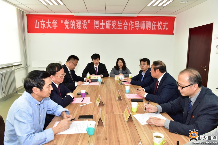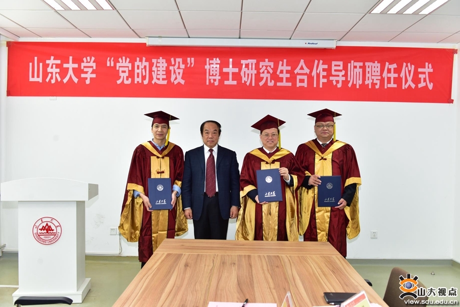 [本站讯]4月25日,山东大学“党的建设”博士研究生合作导师聘任仪式在马克思主义学院举行。富士康集团党委书记刘忠先,温州大学马克思主义学院院长孙武安,济南市政府研究室副主任、长清区委副书记徐龙义受聘山东大学“党的建设”博士研究生合作导师。会议由马克思主义学院院长王韶兴主持。