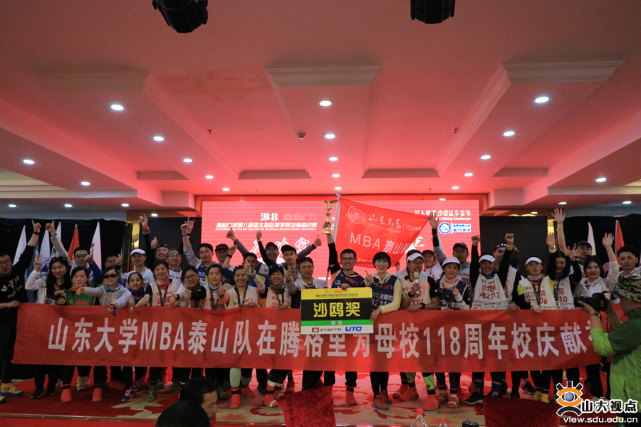 [本站讯]4月30日,第八届亚太地区商学院沙漠挑战赛(简称“亚沙赛”)在腾格里沙漠落幕。山东大学MBA泰山队在长达三天的赛程中团结互助,稳步向前,最终摘得赛事最高荣誉“沙鸥奖”,这是山东大学MBA泰山队自2014年第三届亚沙赛后第二次获得“沙鸥奖”。