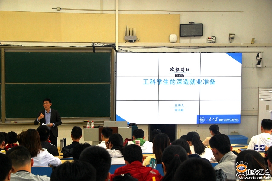 [本站讯]5月7日,能动学院举办第四期“赋能讲坛”。学生就业创业指导中心就业创业指导部部长常海峰作题为《工科学生的深造就业准备》的报告。学院部分学生参加讲坛。