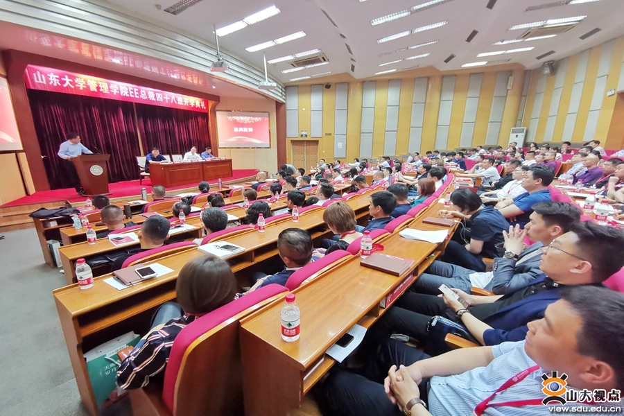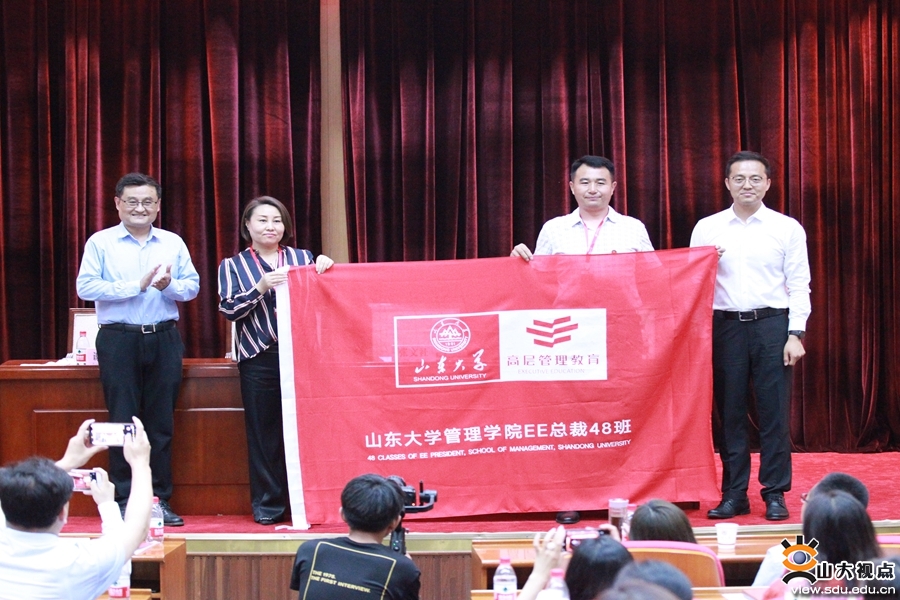 [本站讯]5月16日,管理学院EE总裁48班开学典礼在中心校区举行。管理学院副院长王益民、EE中心主任张文社、教务主任谢洪涛以及学长代表、总裁47班班长、山东三润中小企业投资有限公司董事长赵建一出席了开学典礼。
