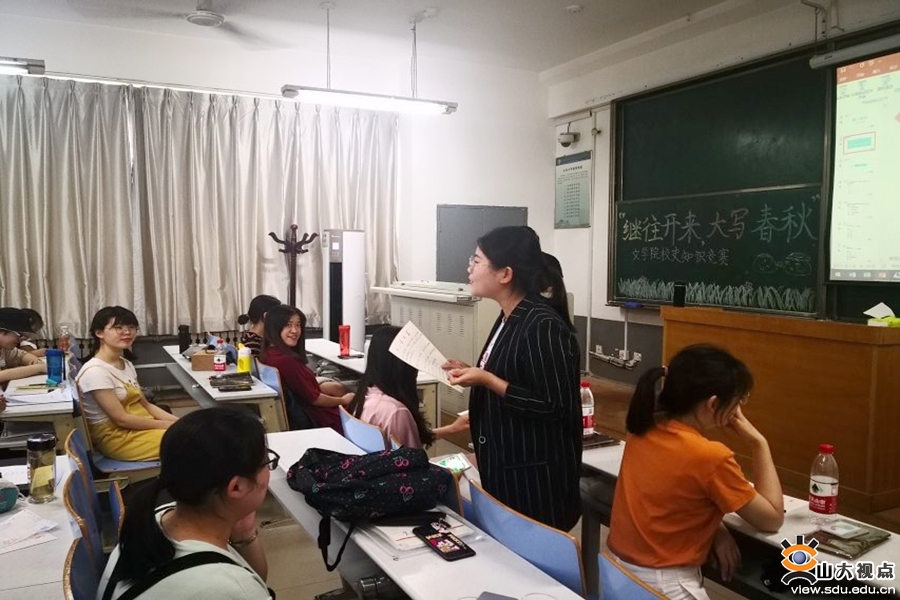 [本站讯]5月16日,文学院在中心校区举办“继往开来,大写春秋”校史答题竞赛决赛。本次活动由文学院学生会主办,旨在帮助同学们充分了解山大历史,增强师生爱校荣校的归属感。