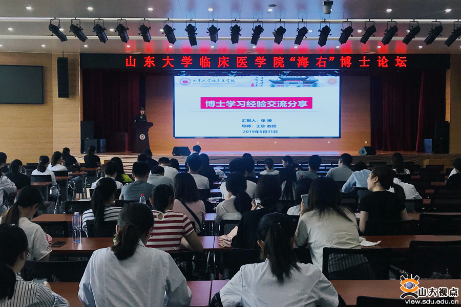 [本站讯]5月31日,临床医学院承办的山东大学“海右”博士生学术论坛举行。临床医学院2019届博士毕业生张娅应邀做客论坛,省立医院教育处处长、博士生导师朱强教授担任点评嘉宾。临床医学院党委副书记孙钰等参加活动。