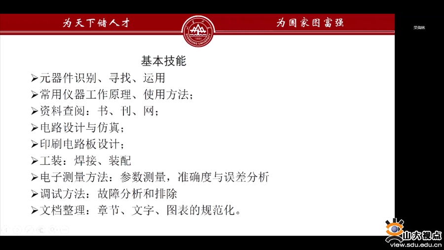 青春新征程,赛出无极限。8月25日,学院举办电子设计竞赛指导分享会。本场讲座由控制科学与工程学院荣海林老师主讲,学院团委张欣欣老师主持,学院百余名学生参加。荣海林老师详细介绍了全国大学生电子设计竞赛及其规则、电子设计的基本方法及学校电赛组织情况。他表示,微电子学院为支持学生参与电赛等竞赛活动提供了大力支持和诸多便利条件,希望同学们能够珍惜机会、勤勉学习、积极参赛。本次讲座增进了学院学生对电子设计竞赛的了解,为学生今后参赛打下了坚实基础。