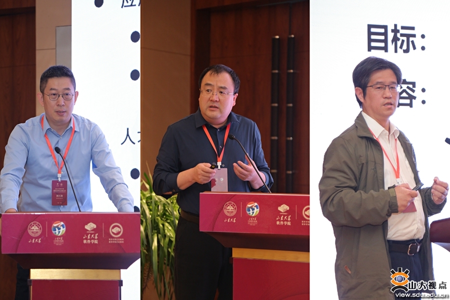 在会议的主旨发言阶段,国家示范性软件学院联盟理事长卢苇首先强调了特色化软件学院建设任务,强调学院要紧抓“强化使命驱动、坚持育人为本、注重科技创新、深化产教融合、突出办学特色”五个基本任务,培养学生的家国情怀与使命感。中南大学计算机学院党委书记陈志刚介绍了全国一流专业建设及软件学科布局情况,为软件学科一流专业建设提出了宝贵思路。浙江大学软件学院院长尹建伟分享了浙江大学软件学院的学生培养方案、学科建设及办学特色,以及聚焦新兴软件、围绕科技自立自强人才培养模式的战略布局。北京航空航天大学软件学院副院长张莉从北京航天航空大学软件学院面向国家战略需求和产业前沿培养特色人才的工作经历出发,提出了工业软件工程应牢抓“聚焦+坚持”关键词,将融合与解耦相结合,变革工业软件开发方法,搭建跨学科人才培养的平台。西安电子科技大学软件学院执行院长崔江涛就产教融合的软件工程专业建设提出了探索层次化、递进式人才培养模式的设想。西北工业大学软件学院院长郑江滨以“产品研发设计类“工业软件人才为着力点,提出了建设大型工业软件人才培养课程的思路。武汉大学软件学院副院长李兵提出,大学要跟上新工业革命的步伐,以”产教融合、跨界融合、协同育人“为主体创新人才培养模式。浪潮通用软件有限公司副总裁杨良从浪潮ERP的发展过程介绍了新一代企业级paaS平台的建设思路,并就以开源战略推动产教融合,探索人才培养新模式提出了建议。华天软件魏威回顾了工业界CAD软件发展的历史,介绍了华天云CAD的发展思路和高端CAD人才培养的设想。山东大学孟祥旭以立足工业软件特色,培养国家急需人才为题,阐述了工业软件面临的挑战,分享了山东大学软件学院”1+2+x“的特色化软件人才培养思路。山东大学软件学院副院长刘士军主持论坛。