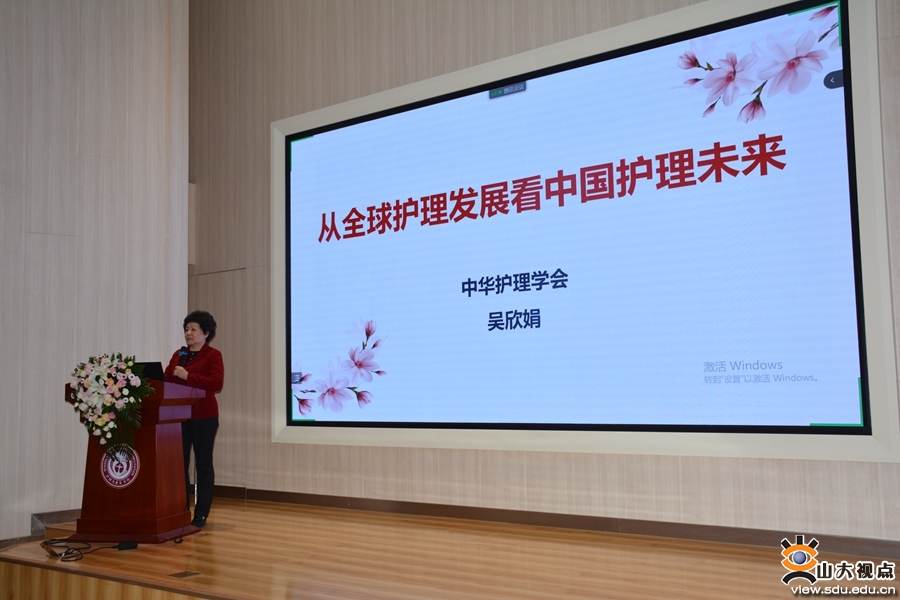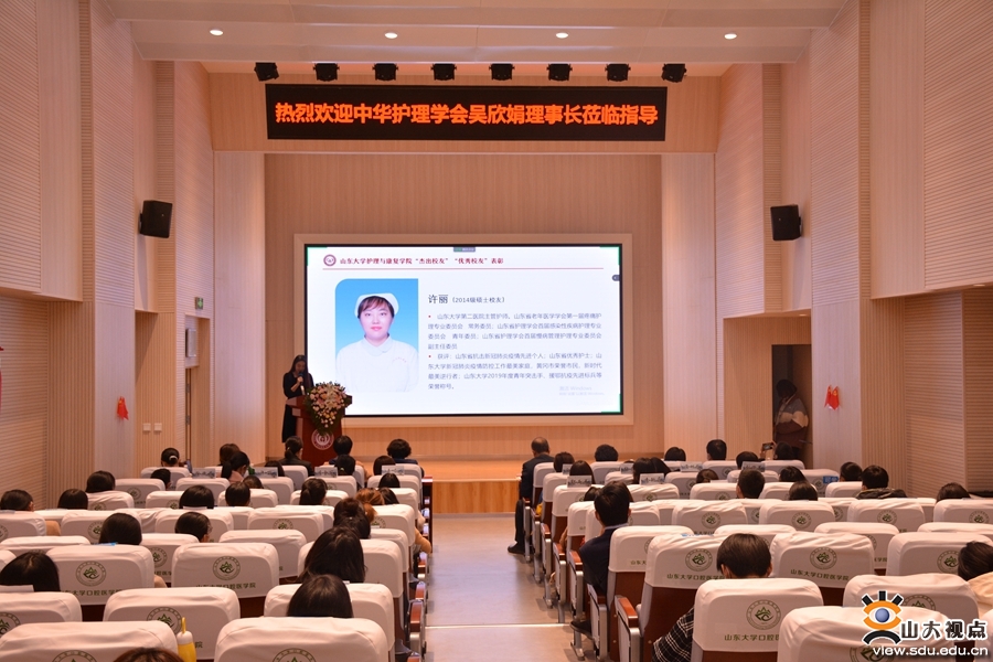吴欣娟作题为“从全球护理发展看中国护理未来”的专题报告。她结合当今新冠疫情背景下护士团队发挥的重要作用,讲述了护理行业在全球的影响力,我国护士在突发公共卫生事件中发挥的重要作用,强调了重视提升护士价值,发挥护士最大影响力。她围绕全球护理发展背景,从政策、社会、学校等层面分析了我国护理发展现状和前景,指出目前我国老年护理、慢病管理、妇幼保健面临的难题,也指出了国家对护理学科发展、职业发展的重视,希望每一位护理人紧跟时代步伐,围绕健康照护,秉承博爱奉献的精神,投身到我们的事业中。吴欣娟对学院师生提出了三点期望:一是希望学院能够紧跟时代改革步伐,着眼全球健康管理,因人施教、转变观念、注重质量;二是希望学院教师,尤其是临床教师,要热爱职业、热爱学生,注重理论结合实践,加强品德教育,敢为人师,教书育人,将南丁格尔的奉献与大爱精神传承下去;三是希望护理学科学生能修身爱国、钻研慎独、专业精湛,重视自身人文素质发展,怀揣爱国之心、报国之情、大爱之魂、奉献之道,为护理事业的发展贡献青年人的力量。吴欣娟对山东大学护理与康复学院在我国护理学科领域作出的重要成绩和引领作用表示了赞赏和鼓励。