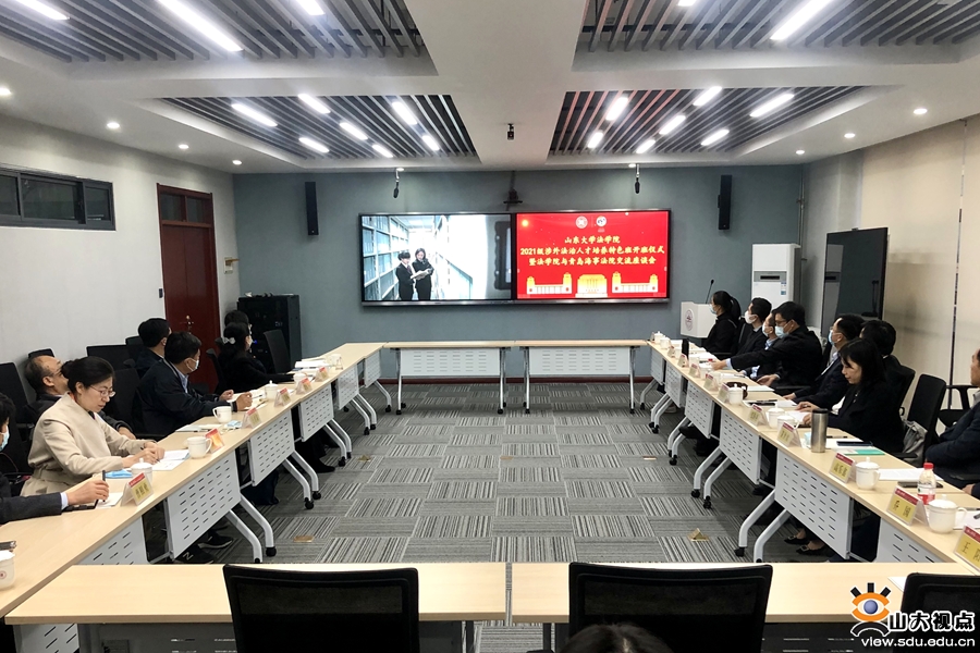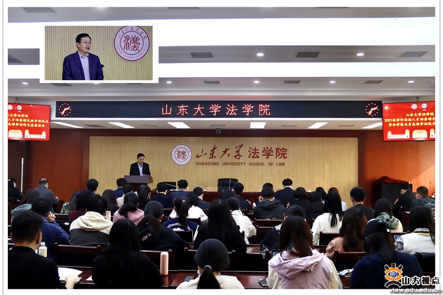 [本站讯]10月30日,山东大学法学院2021级涉外法治人才培养特色班开班仪式暨法学院与青岛海事法院交流座谈会举行。青岛海事法院院长吴锦标,山东大学法学院党委书记于向明、院长周长军等出席活动。
