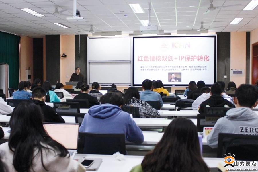 开营仪式过后,第二期“蓝创赢”创客训练营第一课由邢建平教授主讲,他以“硬核创新与专业创业”为主题,以深入浅出的方式、幽默的语言,为同学们讲述创新创业的相关知识。