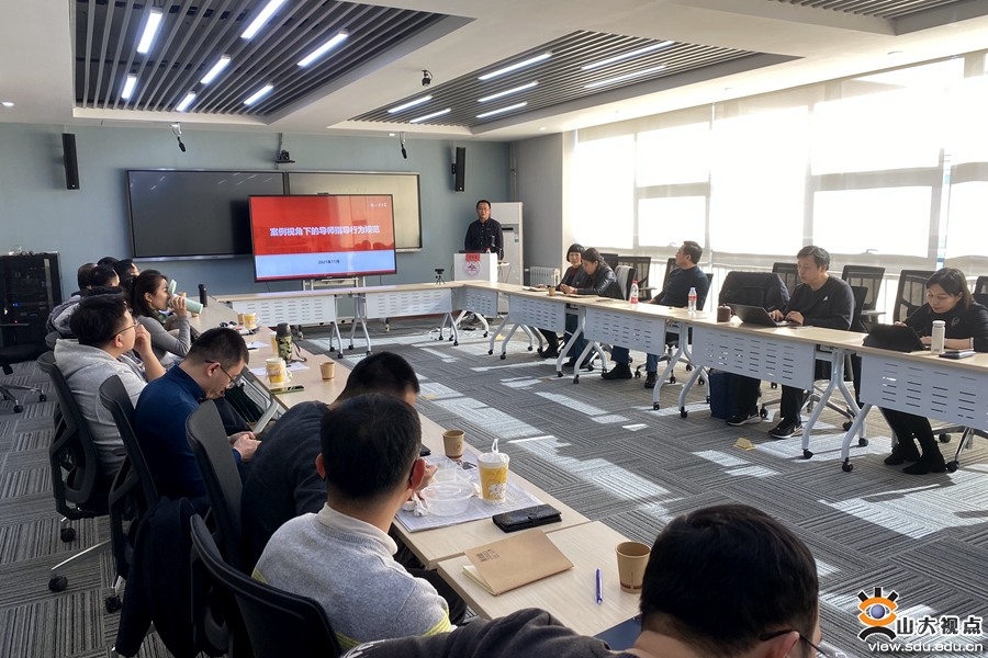 在题目为《案例视角下的导师指导行为规范》专题报告中,徐先蓬首先对教育部近年印发的《关于加强博士生导师岗位管理的若干意见》《研究生导师指导行为准则》等文件以及学校制定的《山东大学研究生导师队伍建设实施办法》进行了全面解读,强调对导师的岗位管理,明确导师基本规范。他结合典型案例详细讲解了师德师风建设中存在的主要问题和风险点。随后,徐先蓬通过对学位论文质量有关数据的分析,提醒各位导师要高度重视学位论文授予质量,严格过程管理,加强指导投入,坚持用心选人、用心待人、用心育人。专题报告结束后,部分导师就关心的问题与徐先蓬进行了沟通交流。