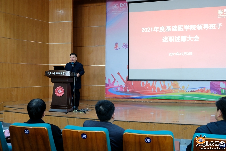 [本站讯]12月3日下午,基础医学院召开2021度中层领导班子和领导人员述职述廉大会,学校党建实地考核工作组六组组长王明良、副组长张力勇,基础医学院党委书记赵福昌、院长高成江等领导班子成员出席会议。会议由赵福昌主持。