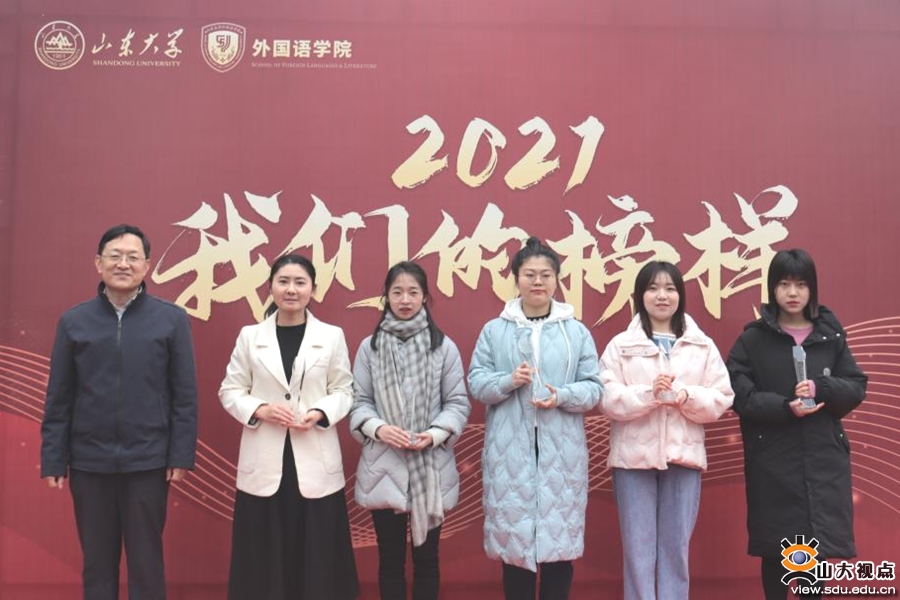 [本站讯]12月16日,外国语学院在洪家楼校区七号楼前小树林举行2021年“我们的榜样”颁奖典礼,表彰2021年获奖的优秀学生和优秀集体。学院党委书记、院长王俊菊出席颁奖典礼并致辞。学院党委常务副书记薛佩军,正处级辅导员曾志英等领导班子成员以及全体辅导员出席典礼。