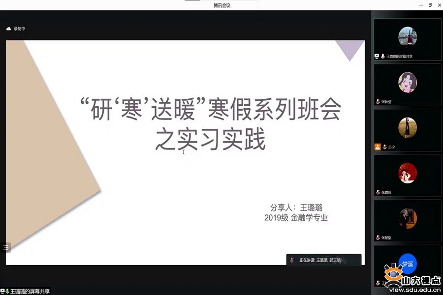 筑牢安全之基,推进安全教育有力度。加强防疫安全教育,开展“科学防疫”线上主题教育班会,通过PPT展示、播放视频等多种方式向同学们宣传防疫知识和个人防护指南,并提供了有关居家防疫的实用性建议,同时充分动员家长力量,共同筑牢疫情防线。召开防诈安全教育线上主题班会,通过通俗易懂的讲解方式,用身边鲜活的案例作为警示,向同学们普及了套路贷、校园贷、电信网络诈骗的常识,进一步提高了同学们对各类诈骗的防范辨识能力,增强了同学们的防诈安全意识。开展心理安全教育,邀请山东大学学生心理健康教育与咨询中心教师李晓晗为同学们作“假期快乐生存指南”主题心理健康安全讲座,向同学们讲授了如何在寒假期间缓解就业学习科研学术压力、愉快地和家庭相处、提高假期的效率及幸福感。