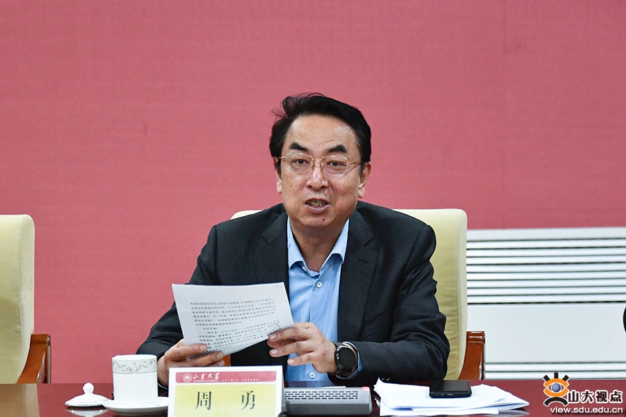 周勇在讲话中指出,齐鲁交通学院秉承开放办学的初心,凝聚了强大的师资和科研力量,为山东大学建设世界一流大学和一流交通学科提供了稳定支持,为山东高速集团科研水平提升和高新技术产业开拓提供了有力的支撑。双方聚焦交通领域科技前沿,结合山东工程建设和产业发展需要,在各领域开展了全面深入合作与交流,取得了令人欣喜的成绩。他强调,“十四五”时期,是交通强省建设的关键阶段,集团在服务新时代现代化强省建设中将展现更大担当,希望学院加紧谋划好龙山校区(创新港)产教融合大平台建设,发挥好创新驱动的作用,大力开展关键核心技术研发与成果转化,统筹配置资源、资本、技术、产业优势,加速推动我省高速公路数字化和智慧化提升。他表示,山东高速集团将进一步集聚资源、资本、技术、产业优势,统筹配置人才培养保障条件,大力支持学院发展,集团愿与山东大学齐心协力联袂打造顶尖企业与名校互融共赢、服务山东高质量发展的优秀典范。