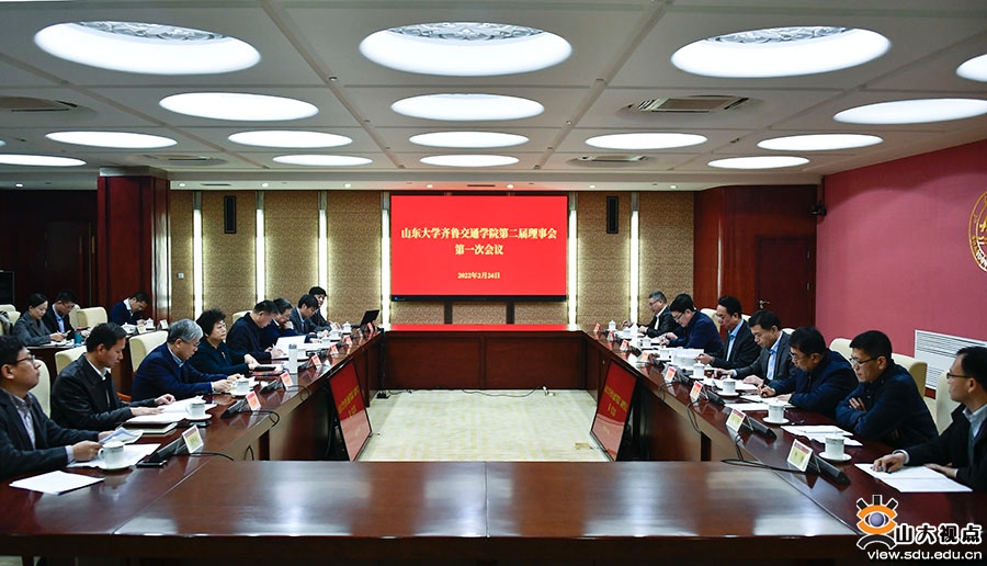 [本站讯]2月24日,山东大学齐鲁交通学院第二届理事会第一次会议在中心校区召开,校长樊丽明出席会议并讲话。山东高速集团党委书记、董事长周勇,党委副书记、董事、总经理王其峰,执行总监左志武,山东大学副校长芦延华、吴臻出席会议。副校长、齐鲁交通学院院长李术才主持会议。