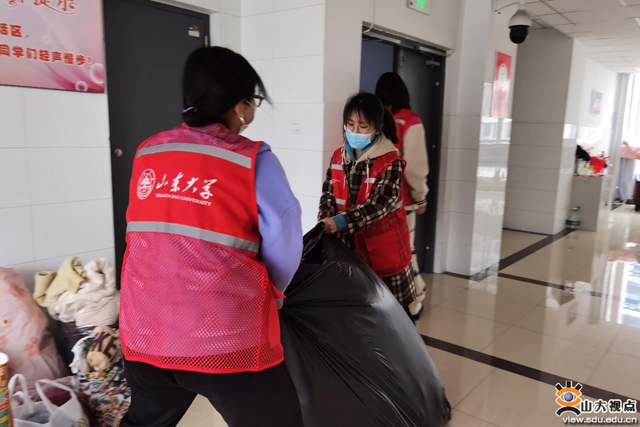 “衣”往情深,“衣”路同行。3月19日至20日,旧衣回收活动在学院本科生宿舍开展。为保证旧衣回收活动顺利进行,志愿工作与生活部提前与旧衣回收平台建立联系,并在学院“闻声”志愿服务队内招募志愿者,为活动提供了充足的服务人员保障。活动过程中,志愿者们身着“山大红”志愿马甲,根据活动前收集到的衣物捐赠信息抵达捐赠者宿舍,收集到了大量同学们已用不到的衣物和用品。旧衣回收活动立足学生需求,有效解决了同学们旧衣处理难的问题,提高了新传学子的奉献与担当意识,展现了学院浓厚的志愿服务氛围。