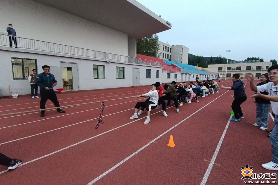 座谈会后,老师和同学们齐聚操场,开始激动、愉快的运动会。孙晋海首先对策划组织本次活动的高岩副院长、卢士涌副书记、研究生班主任崔莉莉以及研究生会同学们表示感谢,感谢他们为学院师生身心健康、师生交流做出了很大的努力。随后,郭学庆宣布“师生共运动”活动正式开始。活动共包括拔河比赛、跳绳比赛和丢沙包比赛三部分,研究生们按照年级分为研一队,研二队和研三+博士队,导师们随机进入每支比赛队伍中。正式活动开始前,孙晋海带领全体师生进行了有趣、全面的热身运动。然后,激动人心的拔河比赛开始了,在这场力量与配合的大比拼中,一声声“一、二”的加油口号使团队拧成一股劲,每组成员们都齐心协力,体现了极强的斗志,最后研三+博士队取得拔河比赛的第一名。跳大绳比赛中,研三+博士队凭借高超的团队配合和精湛的跳绳技巧,摘得此项赛事的桂冠。丢沙包比赛考验大家的体力和反应能力,终日沉浸在教室、图书馆的同学们,发散出青春的活力。