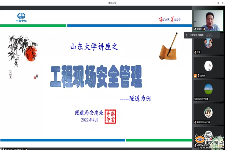柴福奇在讲座中强调,围绕工程现场开展安全管理专题教育,在国内高校非常少见,希望学院积极开展安全教育工作,助力学院事业发展。随后,他结合工作实际介绍了安全理念、安全意识的重要性,围绕“安全三宝”“三级安全教育”“四不放过”、个人防护用品、一般安全行为规范等,介绍了工程现场的安全常识,结合学院工程现场实际介绍了隧道施工安全的相关知识,并特别强调了施工过程中高处坠落、物体打击、机械伤害、触电等四大伤害防范措施。