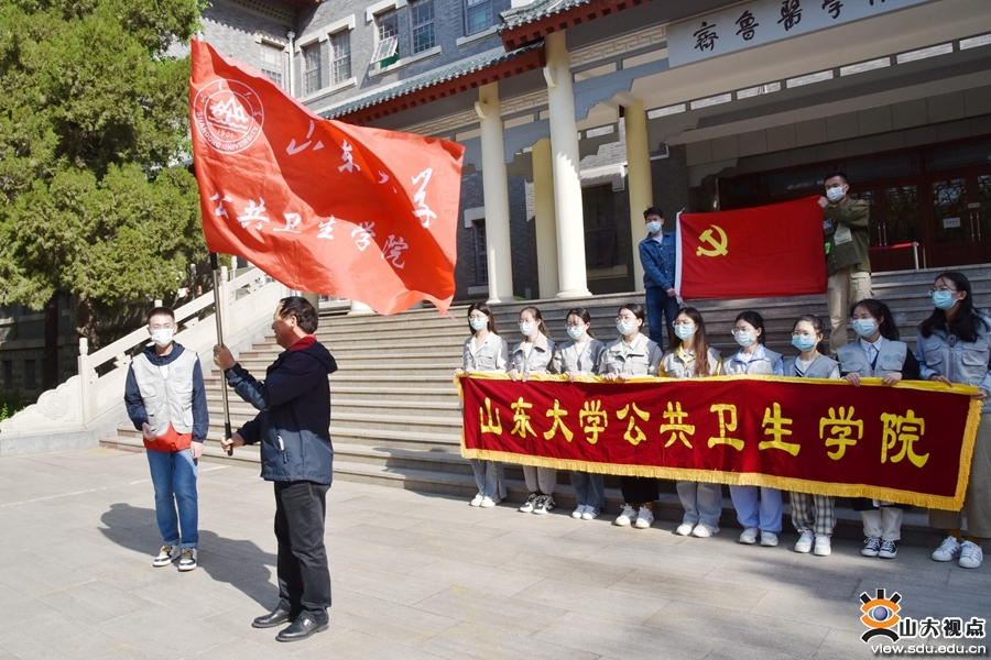 仪式上,张永兵为志愿者们的主动奉献和担当精神点赞,他表示,志愿者们充分体现了山大齐鲁医学人的人文情怀和社会责任,是校园里的最美逆行者。他鼓励志愿者们珍惜这次宝贵的实践机会,将理论知识与专业实践紧密结合,在抗疫一线加深对公共卫生专业的认知与理解。最后,他叮嘱志愿者们一定要保护好自己,互相帮扶,圆满完成任务,早日平安凯旋。