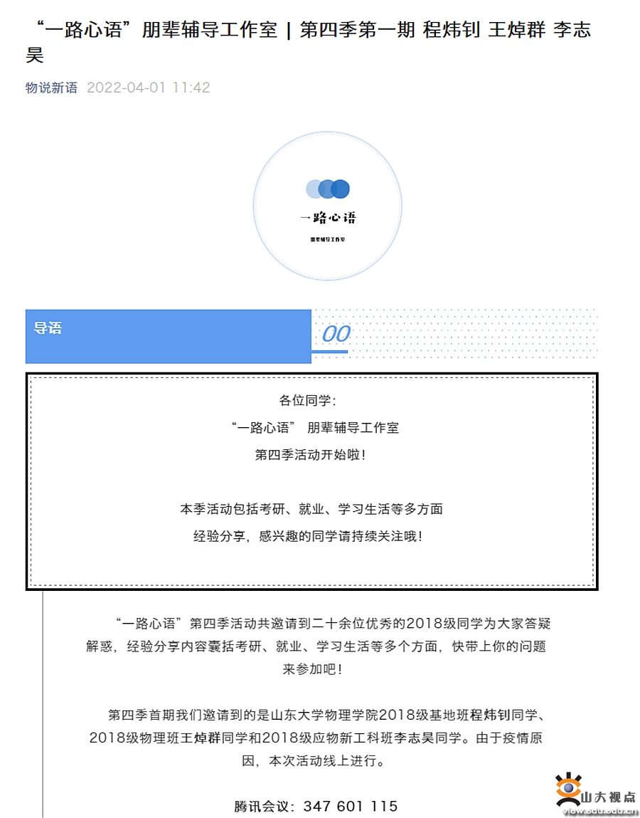 心理疏导点对点发力。学院将关心关注学生的心理状态作为近期的一项重点工作,以“一路心语”心理辅导站相关工作的推进为抓手,发挥学院心理咨询队伍在开展大学生心理健康教育、守护山大学子全面健康成长方面的作用,发挥朋辈力量在助力大学生积极心态培养方面的作用,努力帮助学生“解其忧、暖其心、励其志”。针对特殊时期同学们的心理变化,学院精准做好对学业困难、经济困难、因病就医、心理困惑、考研失利等不同群体学生的“点对点”帮扶工作,及时帮助学生们解决在学习、生活中遇到的困难和问题,让学生充分感受到来自学校、学院的关怀和支持,营造积极心理氛围,打通心理育人“最后一公里”。
