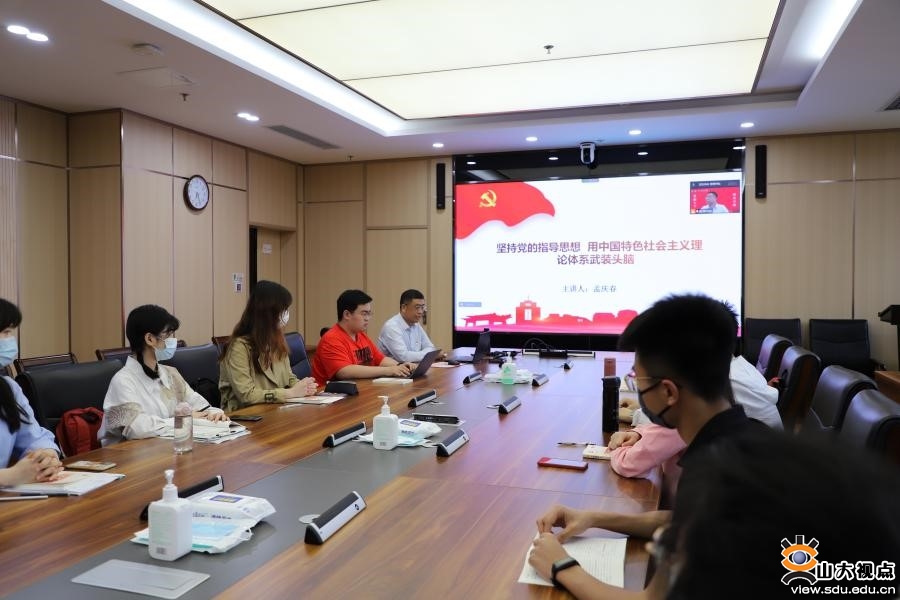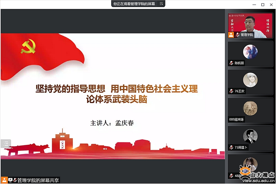[本站讯]4月26日,管理学院党委书记孟庆春以“坚持党的指导思想,用中国特色社会主义理论体系武装头脑”为主题,通过线上和线下相结合方式,向学院师生党员和入党积极分子讲授专题党课。
