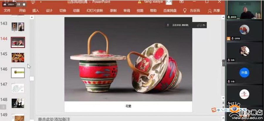 [本站讯]5月5日下午,艺术学院第9期“致广讲坛”以线上腾讯会议的形式举行。本次讲座主讲人为山东工艺美术学院唐家路教授,主题为“山东民间玩偶”。本次讲座由艺术学院院长安宁主持,艺术学院师生近200人线上参加了讲座。