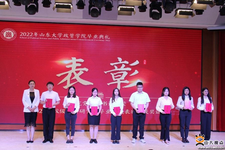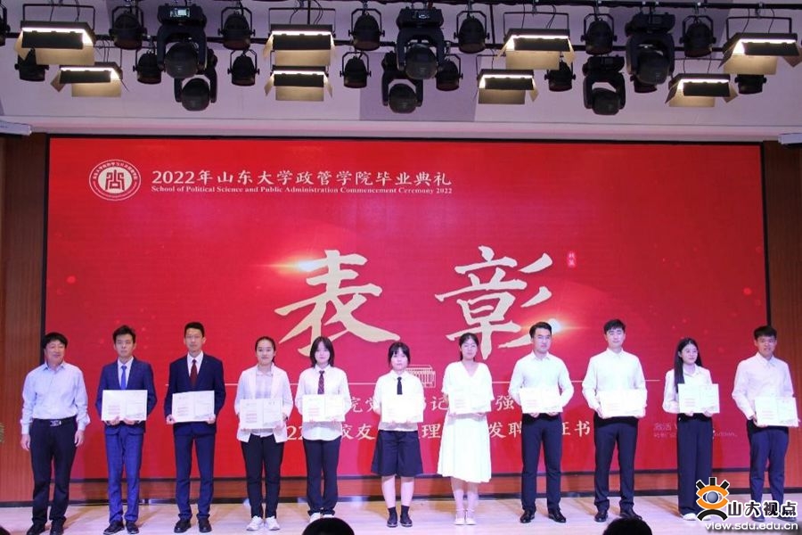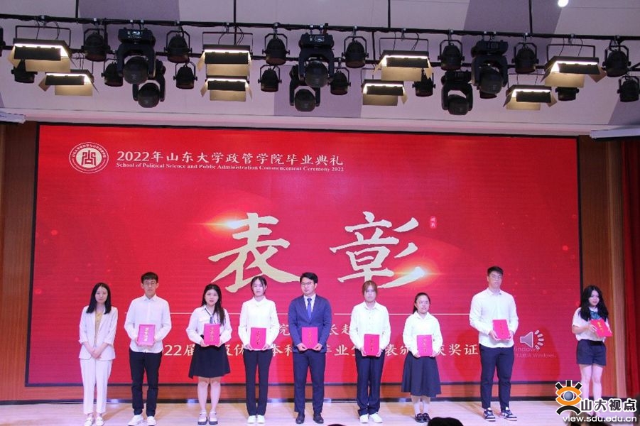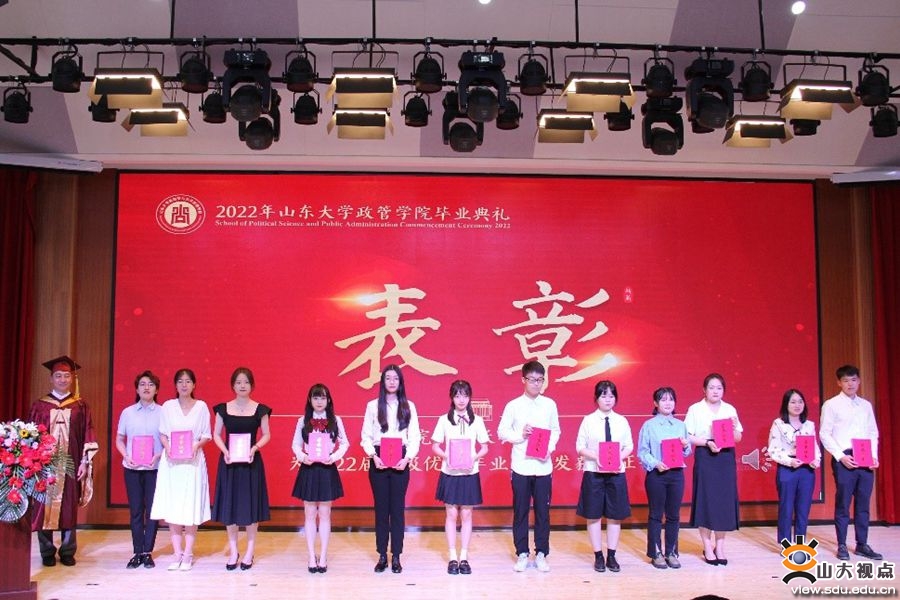 刘昌明宣读了《山东大学关于表彰2022届省级优秀毕业生的决定》,副院长孔新峰为2022届省级优秀毕业生代表颁发了获奖证书。