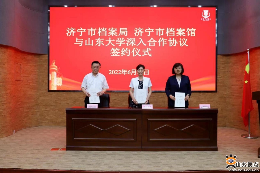 随后,各相关方共同签署《济宁市档案局、济宁市档案馆与山东大学深入合作协议》以及《山东大学与济宁市档案馆共建山东大学实习教学基地协议》,刘军和杜宏春共同为“山东大学实习教学基地”揭牌。