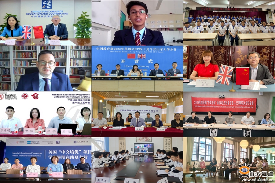 [本站讯]为落实中英两国教育合作倡议,2022年“汉语桥”英国“中文培优”项目学生在线夏令营于7月4日开幕。中国教育部副部长田学军、英国教育部学校事务部长罗宾·沃克、英国驻华使馆文化教育公使/英国文化教育协会中国区主任包迈岫、伦敦大学学院教育学院院长李嵬出席活动并致辞。教育部中外语言交流合作中心主任马箭飞主持开幕式。山东大学作为国内16所承办院校之一,参加开幕式并与芬南园学校、斯坦顿伯里学校、佩特文法学校、达特福德文法学校等4所英方机构联合举办山东大学分营启动仪式。