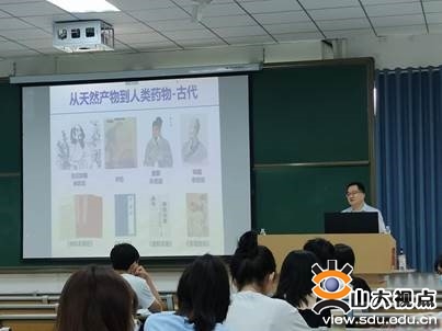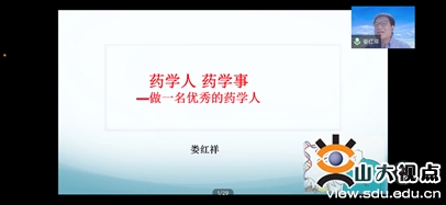 瑞典卡罗琳斯卡医学院终身教授、中国工程院外籍院士曹义海以“新生血管治疗代谢疾病机制探讨”为主题作科研讲座,以通俗易懂、幽默风趣的语言向同学们介绍了寒冷状态下的老鼠如何通过增加血管生成的方式达到“减肥”的效果。北京大学化学学院雷晓光教授作“为合成科学插上化学与生物两只翅膀”主题讲座,重点阐述了如何基于化学与生物学手段搭建从基础生物学研究到创新药物研发之间的桥梁。浙江大学药学院曾苏教授以抗肿瘤药物的现状与困境为研究背景,对药物转运体的基本概念与知识进行介绍,深入分析了药物转运体的不同分类及作用。中山大学眼科学国家重点实验室潘景轩教授就“肿瘤干细胞药理学”展开讲解,分析了肿瘤这种疾病的复杂性,使大家进一步深入了解到肿瘤的发病机制以及肿瘤干细胞的各项功能。山东大学药学院院长鞠建华通过分享我国中医科学院终身研究员兼首席研究员屠呦呦创新研制新型抗疟药—青蒿素和双氢青蒿素的历程,展现了天然药物与生物这一领域的研究日常与方法。山东大学特聘教授、山东省医学领军人才刘新泳以“靶标结构的抗病毒药物的研发策略”为题,为同学们介绍了基于靶标结构的抗病毒药物研究、基于HIV-1逆转录酶、基于流感病毒神经氨酸酶、流感病毒血凝素为靶点抑制剂的发现等内容。山东大学药学院姜新义教授通过引入现有的新冠疫苗制剂形式,以及国内外对新冠疫苗的科研投入与产出情况,加深了同学们对核酸药物递送系统的了解。山东大学药学院免疫药物学研究所所长张建从肿瘤免疫治疗的基础概念出发,详细介绍了目前免疫治疗中最为关键的两个方向——免疫检查点抑制剂以及CAR-T/NK细胞疗法。泰山学者特聘专家、山东大学药学院王凤山教授讲解了糖类药物的研究现状以及新结构多糖和寡糖的发现、多糖与寡糖衍生物的研究、糖疫苗等糖类药物的研究方向。泰山学者青年专家、山东大学药学院教授赵维讲授了儿童药物政策、外推策略在儿童药物研发中的应用、模型引导的药物研发技术和模型引导的方法与应用价值等儿童临床药物开发知识。山东大学药学院副院长沈涛教授以《神农本草经》为始,向同学们介绍了中药治疗疾病的有效性、中药的研究模式、中医药驱动的创新药物研究、中医药传承创新面临的问题等多个方面的内容。