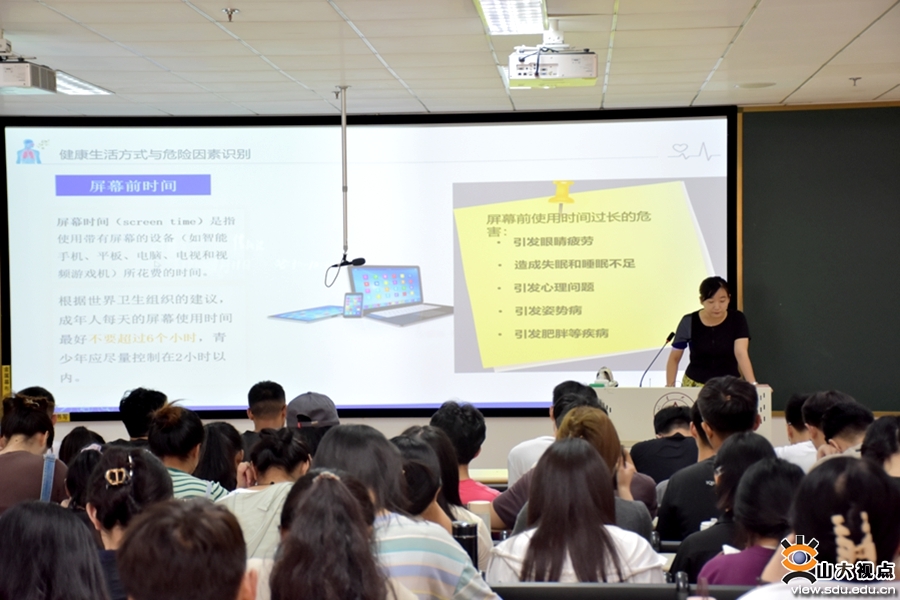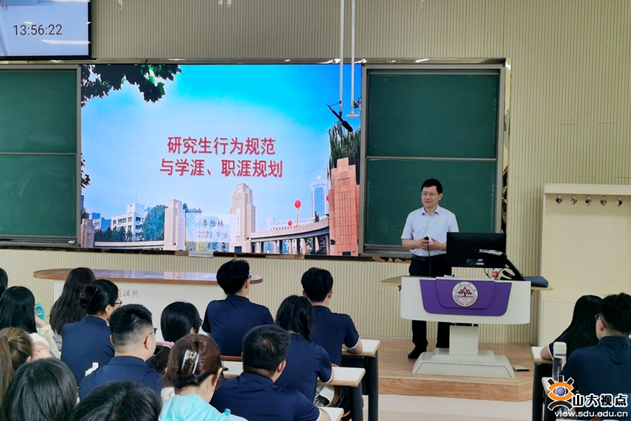 聚焦环境适应,讲好“身心健康”守护课。校医院陈丛聪老师应邀为研究生开展“健康生活”指导。她从日常生活中的不良行为与生活方式入手,向同学们介绍营养膳食、常见的健康指标,针对同学们可能面临的意外受伤的紧急情况,展示了一些常见的卫生应急技能,以提高学生的自我保护能力。山东大学心理咨询中心凌钲程老师受邀为新生开展题为“成为自己,成为更好的自己”的专题讲座。他从调查研究中总结了研究生在人际关系、学业发展、生活变化和自我成长等方面可能面临的困扰,并提供了具体的压力管理方案。